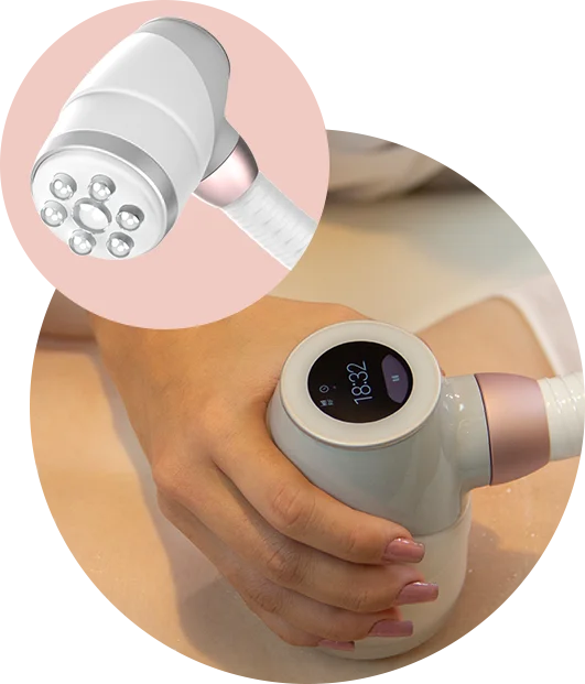 O equipamento permite aplicar (-) menos 25 graus na superfície da pele através da ponteira, enquanto o sistema multipolar aumenta consideravelmente a temperatura interna do tecido epidérmico. Este tratamento gera um choque no interior da pele graças à combinação do frio externo e o calor interno.